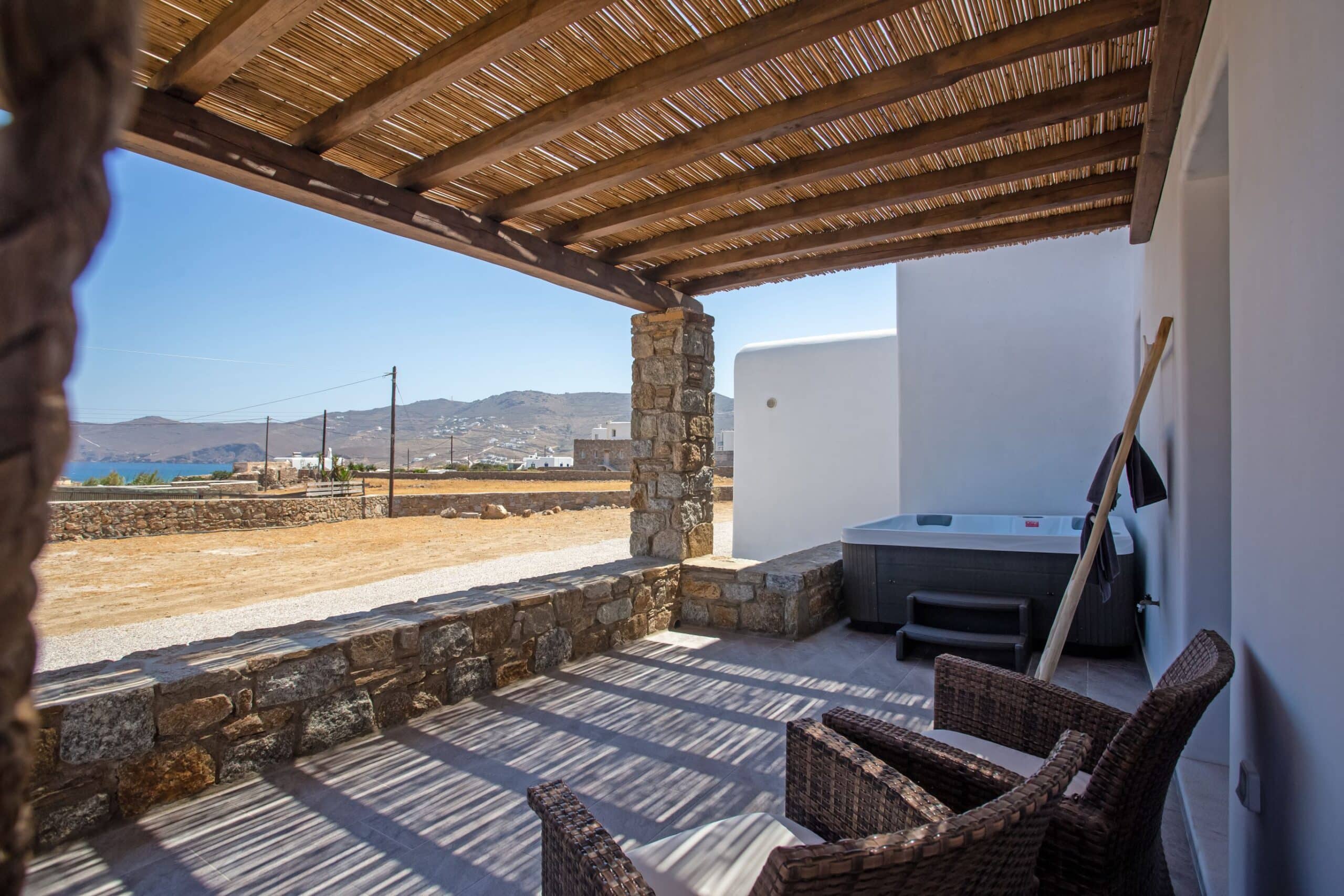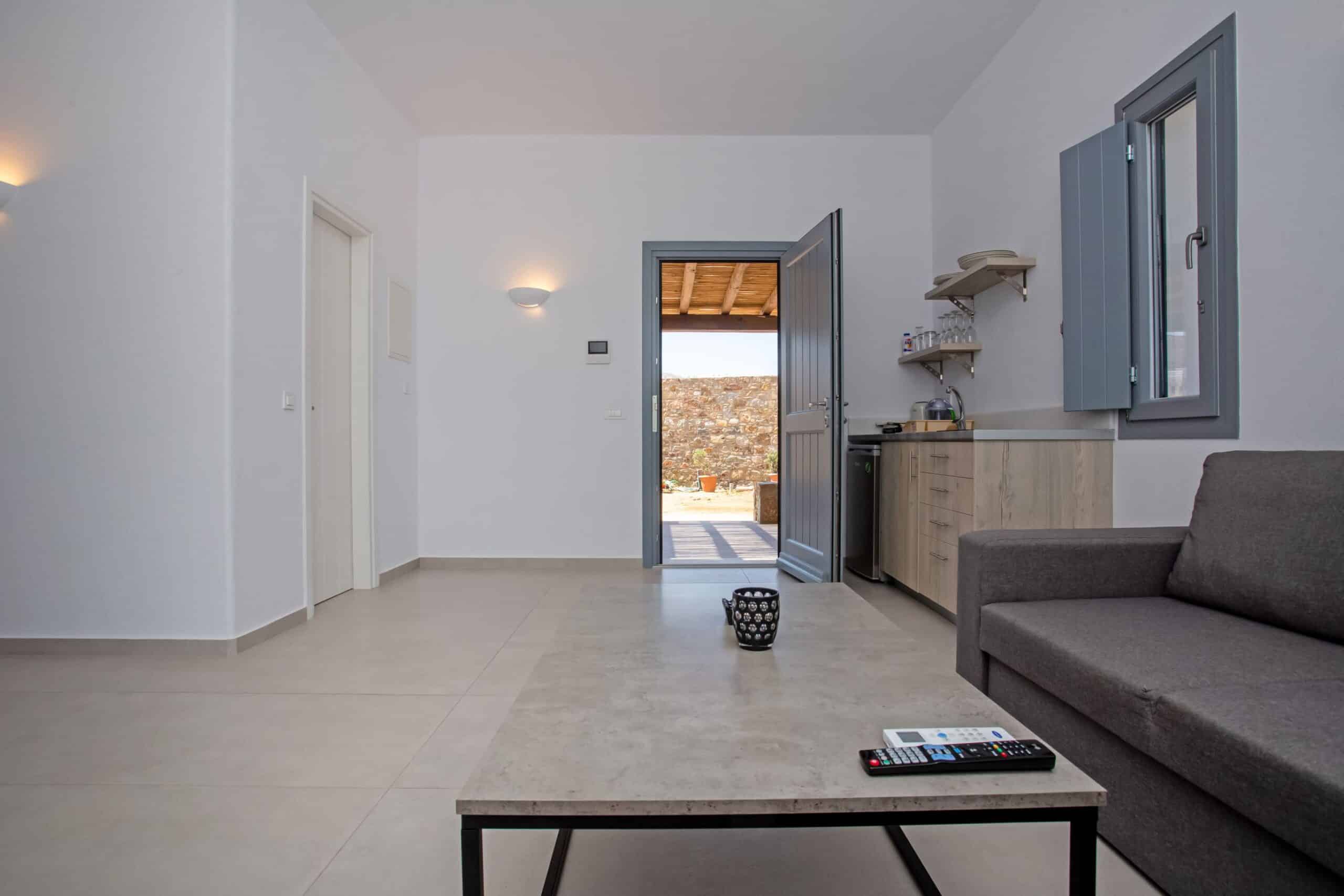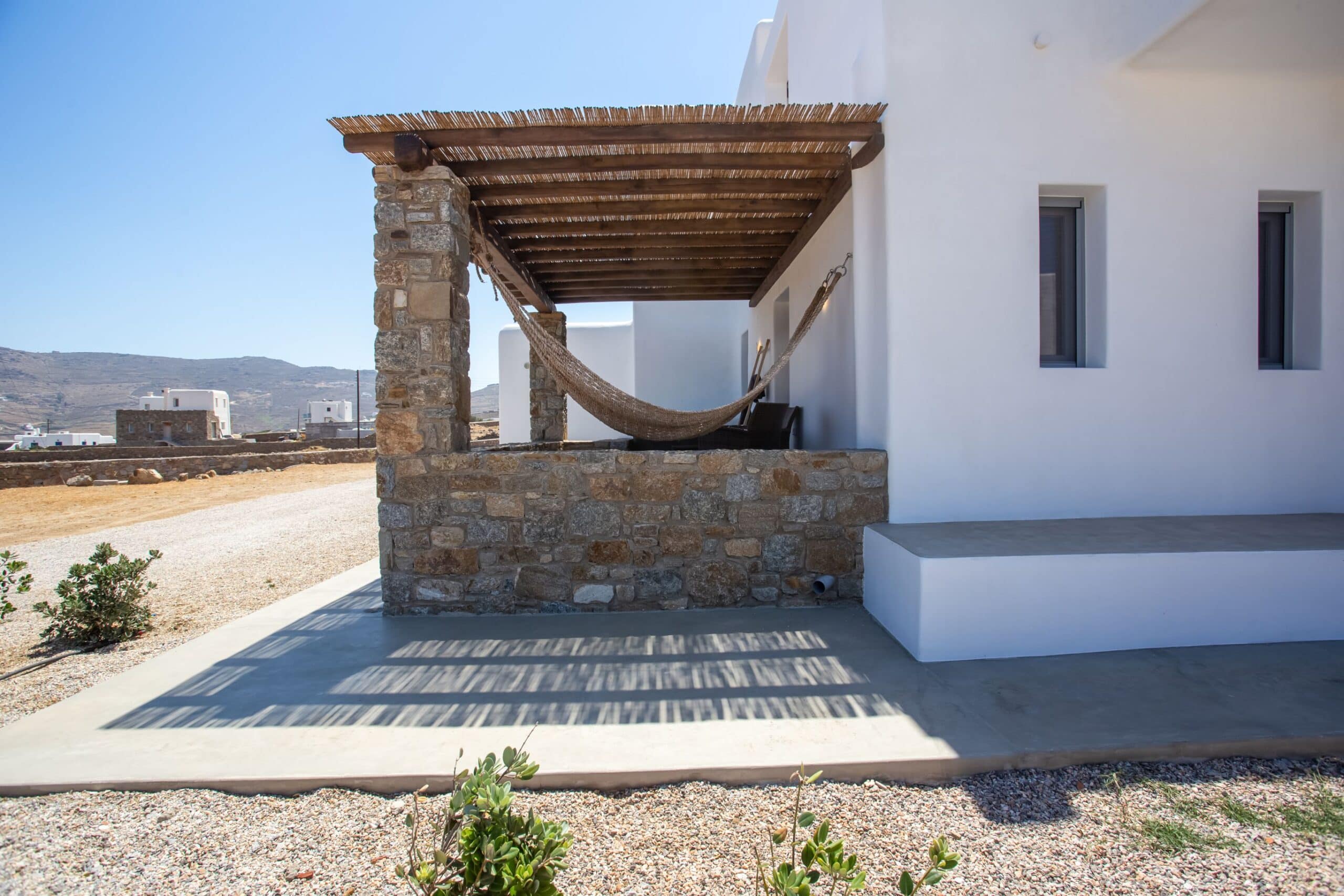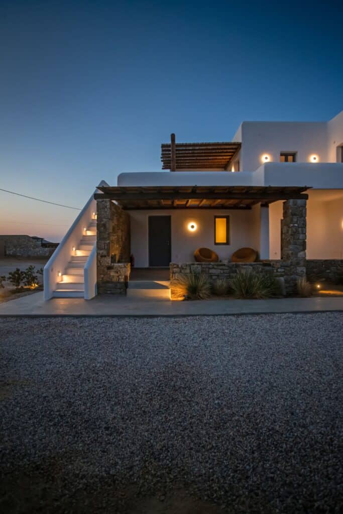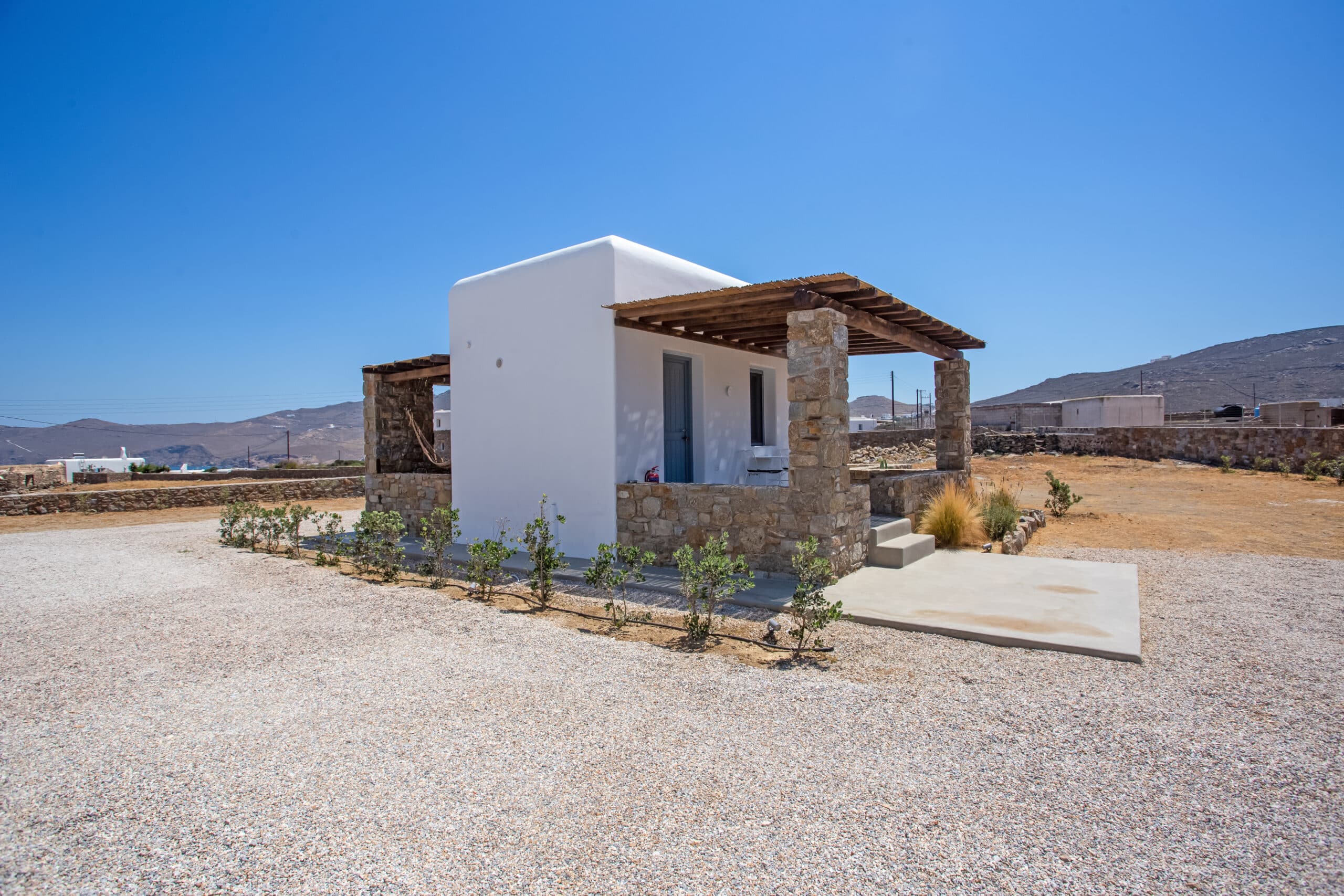 The location is for sure unbeatable considering that is only one minute drive away from Ftelia beach which is well known for its famous beach bar-restaurants such as Alemagou and Pacha. Just 4 Kilometers away from Mykonos town and 5 minutes drive to Ano Mera village where you can find bakeries, pharmacy, groceries or taste local specialties in many Greek tavernas.