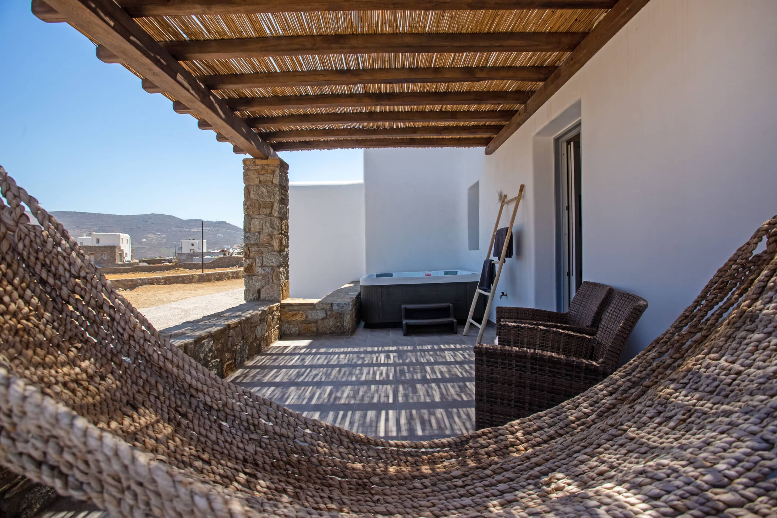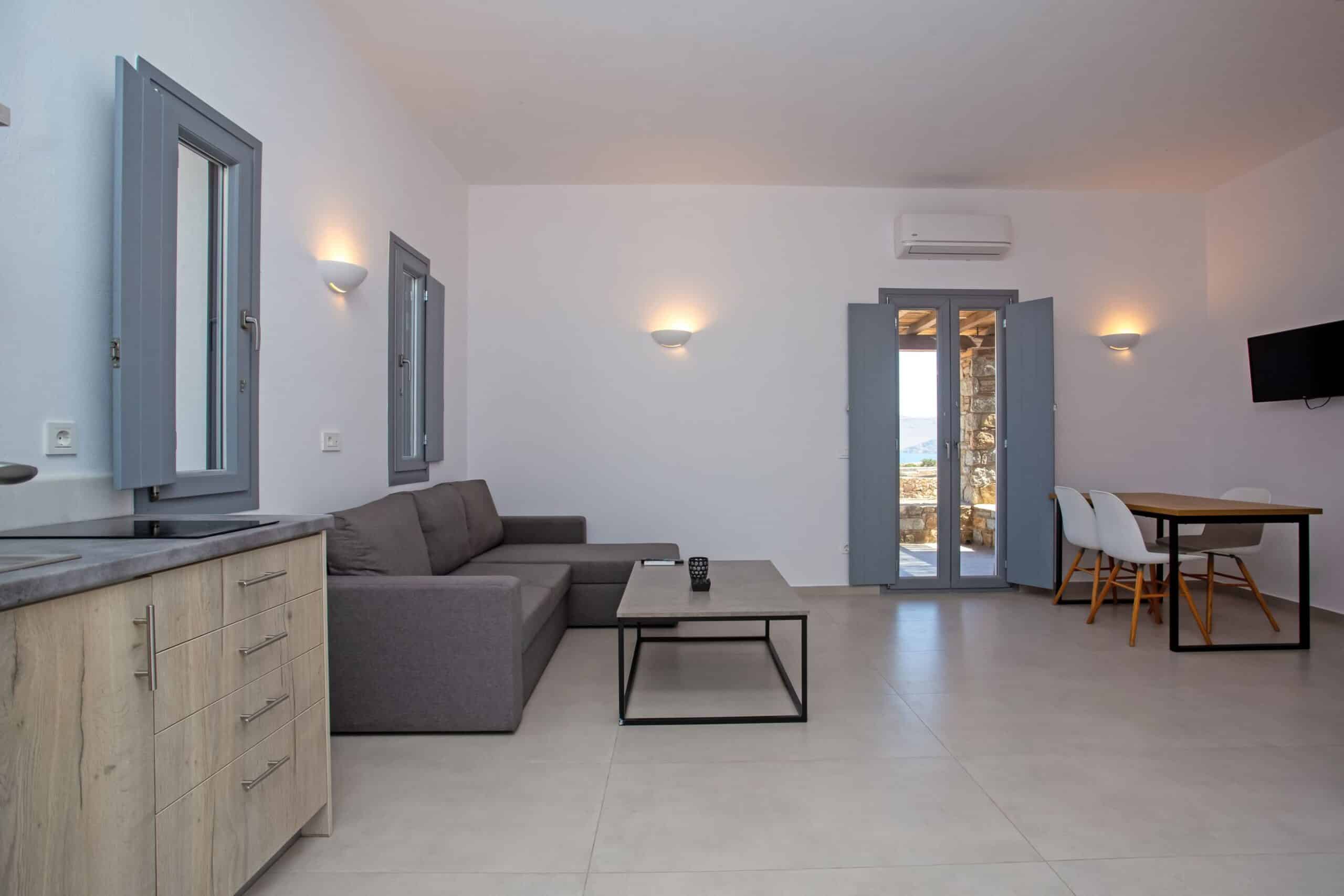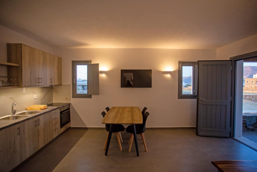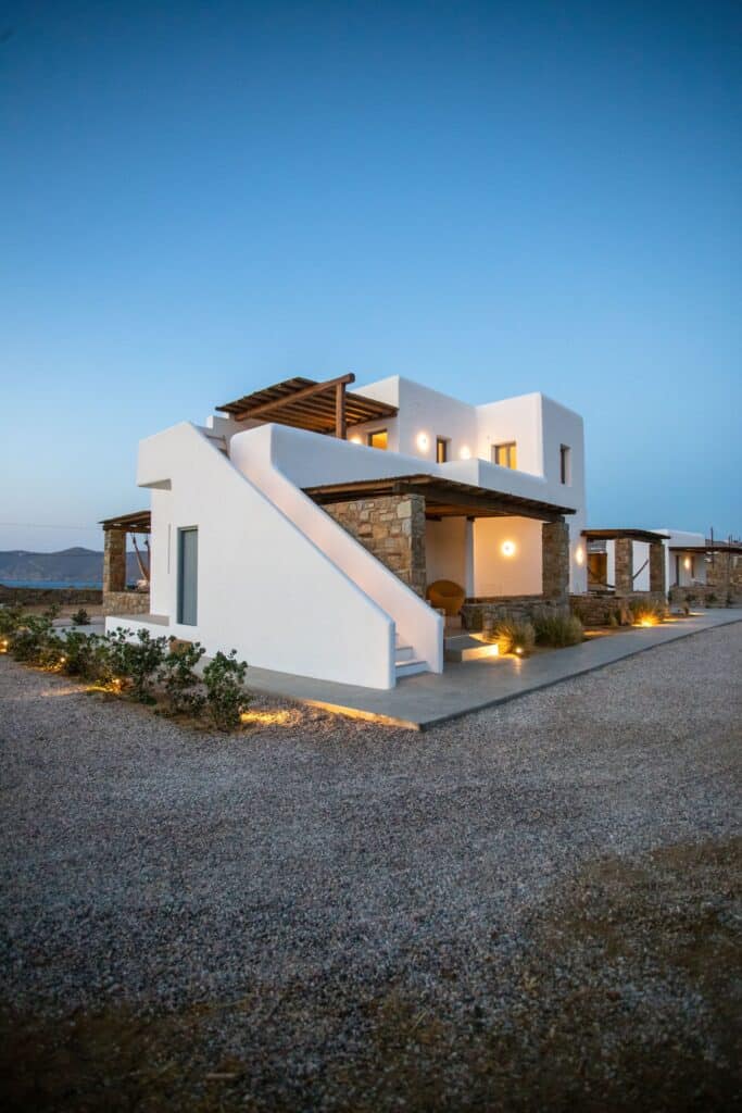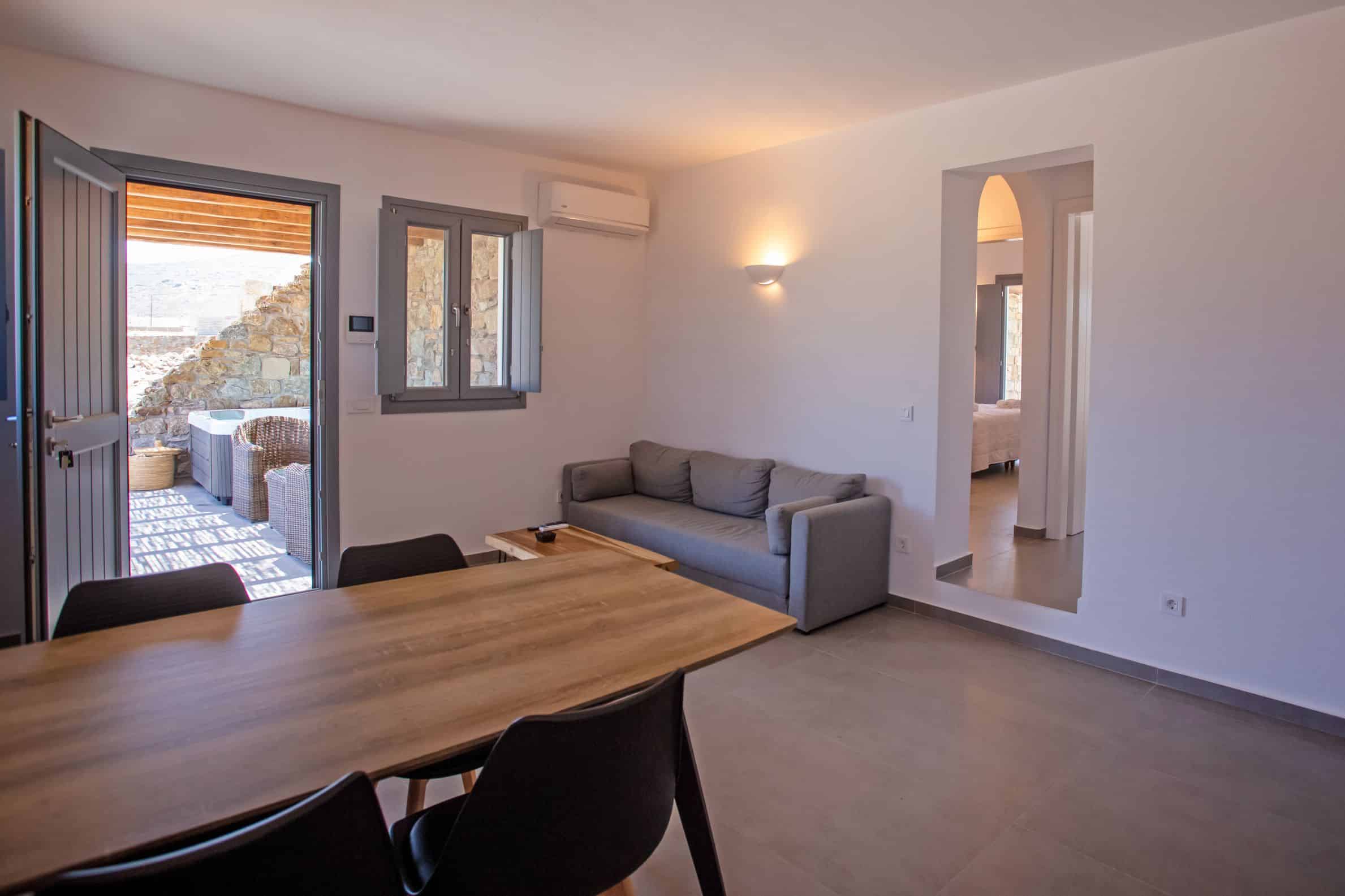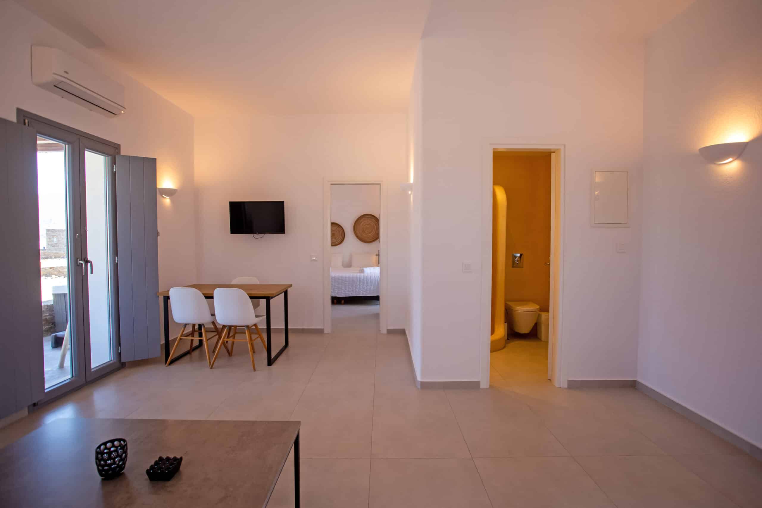 The location is for sure unbeatable considering that is only one minute drive away from Ftelia beach which is well known for its famous beach bar-restaurants such as Alemagou and Pacha. Just 4 Kilometers away from Mykonos town and 5 minutes drive to Ano Mera village where you can find bakeries, pharmacy, groceries or taste local specialties in many Greek tavernas.