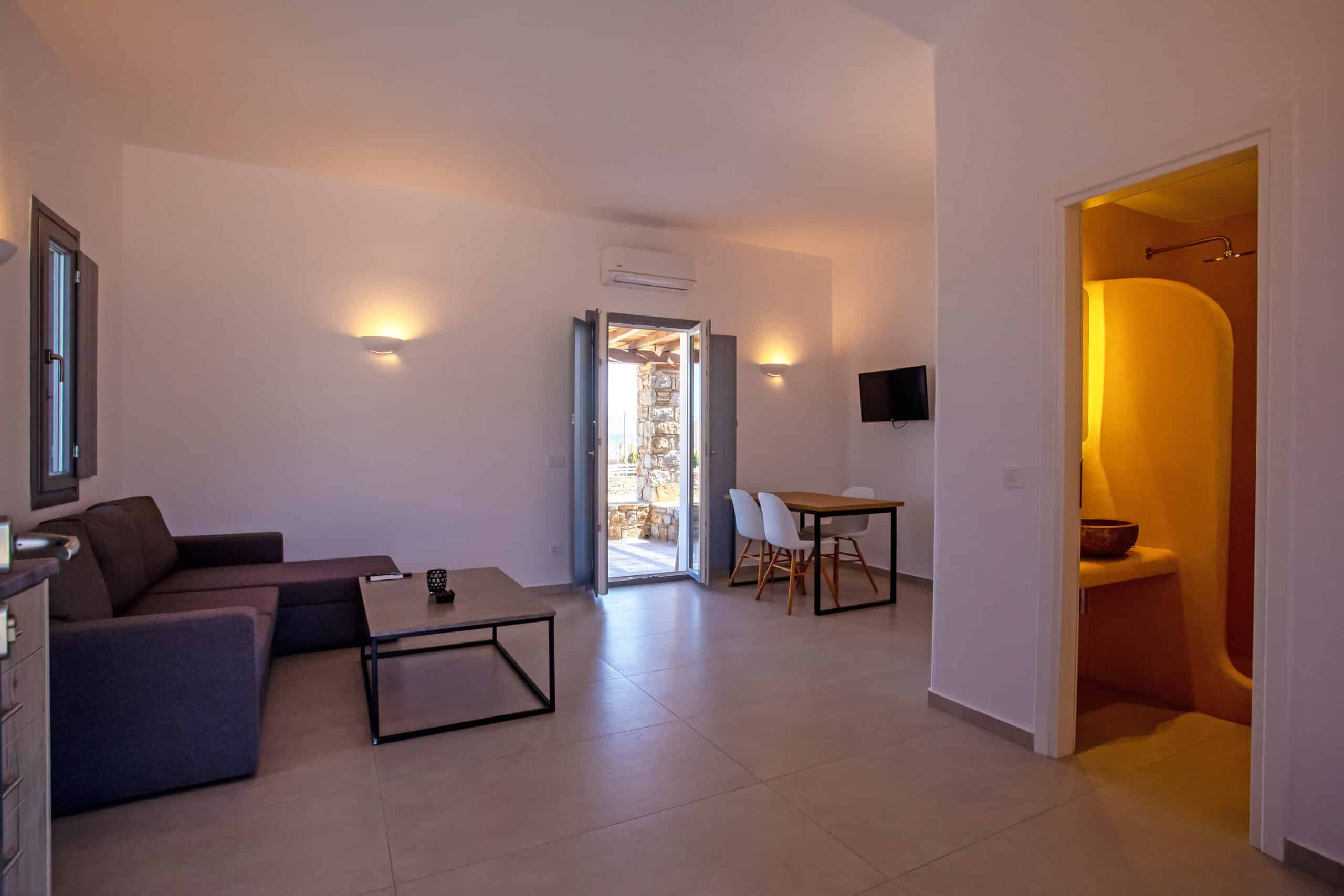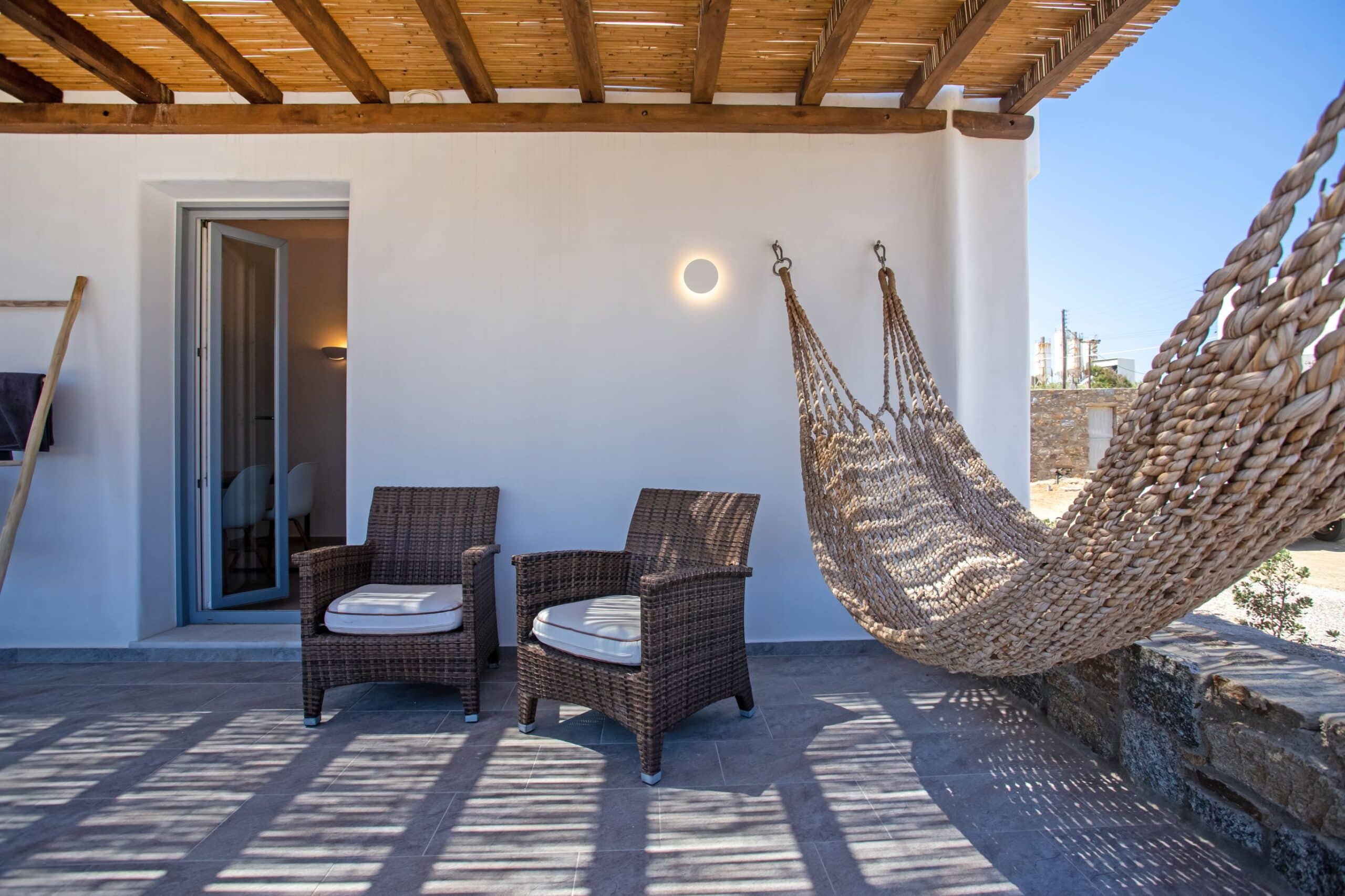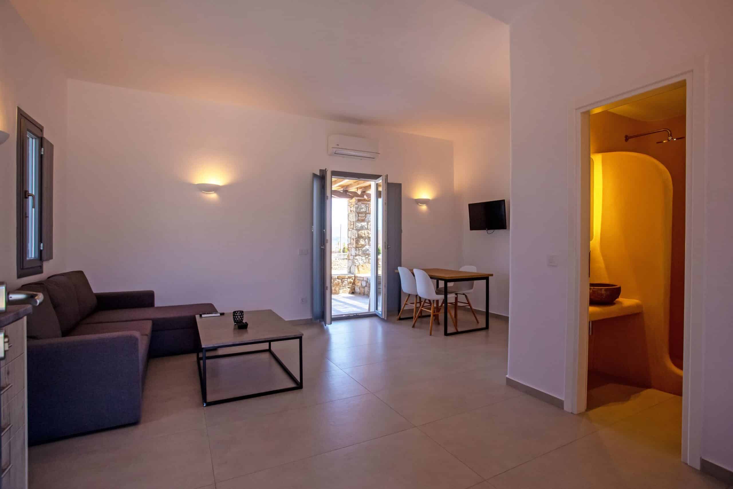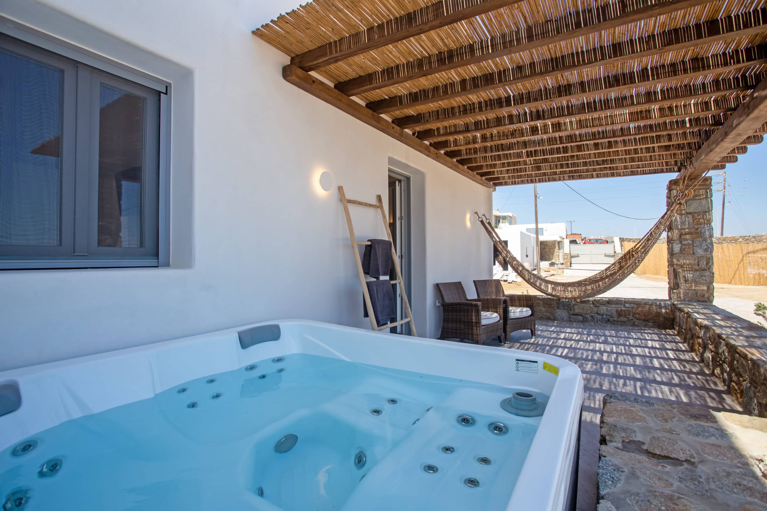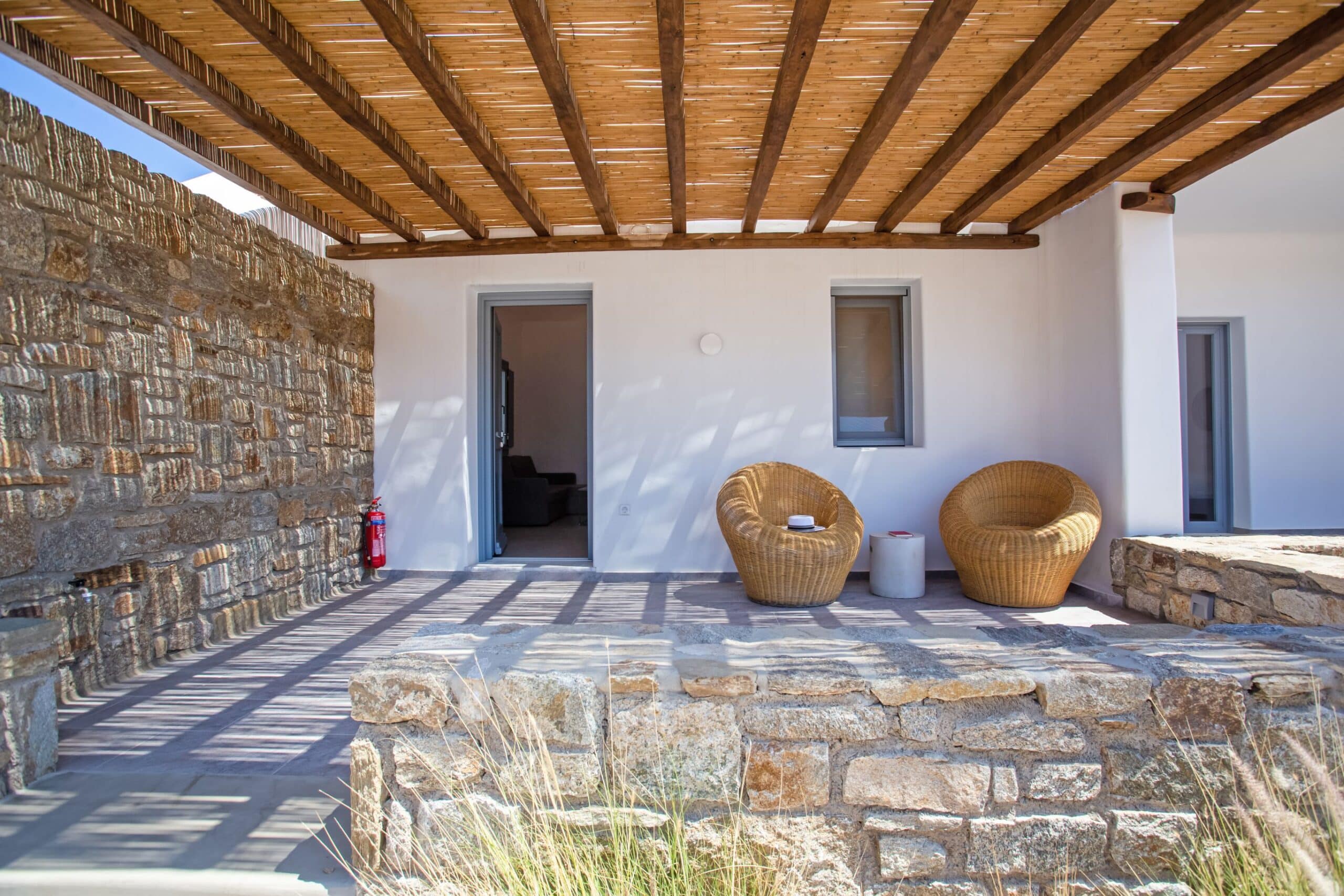 The location is for sure unbeatable considering that is only one minute drive away from Ftelia beach which is well known for its famous beach bar-restaurants such as Alemagou and Pacha. Just 4 Kilometers away from Mykonos town and 5 minutes drive to Ano Mera village where you can find bakeries, pharmacy, groceries or taste local specialties in many Greek tavernas.